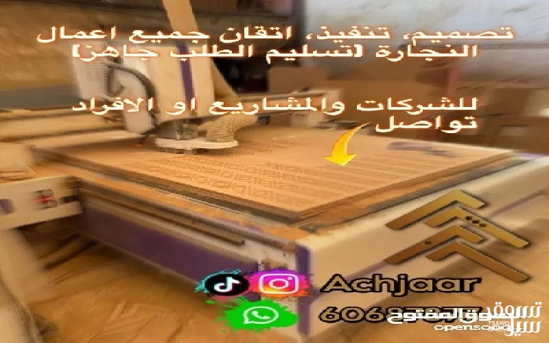 الوصف منجرة متكاملة باحدث الاجهزة وايادي عاملة ممتازة لتنفيذ طلبك من الى بافضل نتيجة وافضل سعر عمل كل ما يتعلق بنجارة: تصميم، تنفيذ واتقان على حسب طلبك + خدمة منازل وشركات خشب، اكريلك