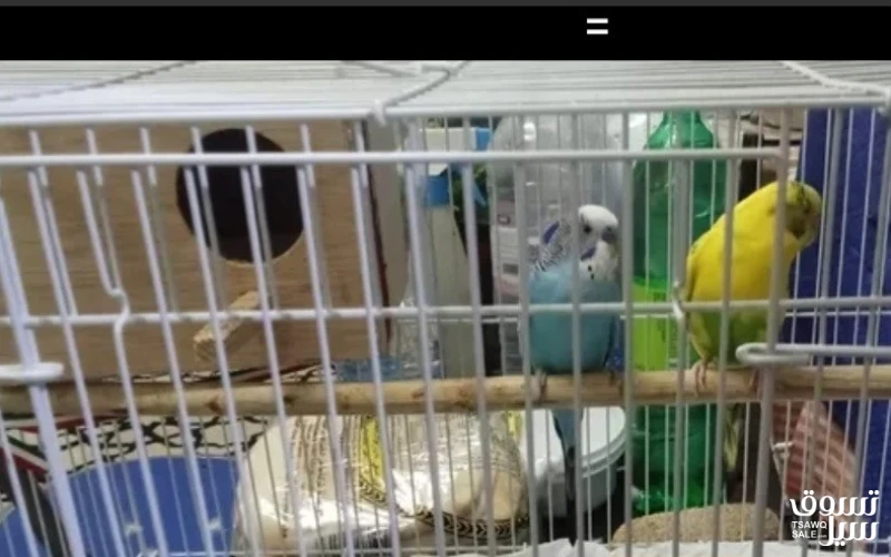 عصافير بادجى شامل القفص لسه جديد وبيت خشبى لوضع البيض واكاله وسقاية مياه وبسم الله ماشاء الله تغريدهم جميل جدا