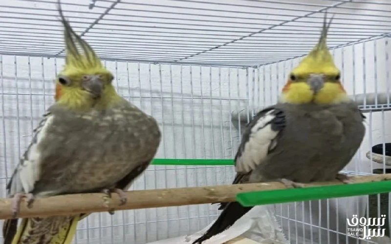 عدد 2 عصفور من نوع الببغاء ملون داخل قفص يمكنك اخراجهم من القفص داخل المنزل وهم يعودون لدخول القفص دون تدخل مره اخري