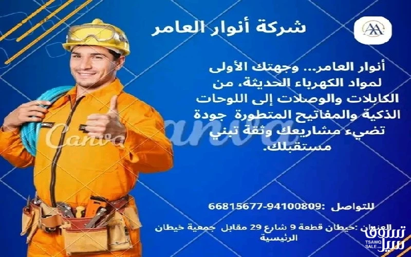 أنوار العامر… حين تتحول أدوات البناء إلى شريك في الإنجاز #كهرباء #صحي #مواد_بناء تواصل معنا 94100809 66815677 العنوان : خيطان قطعة 9 شارع 29 مقابل جمعية خيطان الرئيسية. https://khalejianews.com/posts/9171