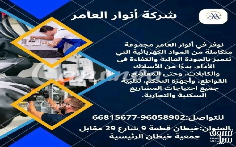 #أنوار_العامر: لأن مشاريعك تستحق الأفضل- يوجد لدينا جميع مواد الكهرباء- يوجد لدينا الأدوات الصحية ومستلزماتها- يوجد لدينا مواد التكييف ولوازمها- عقود صيانةالعنوان : خيطان قطعة 9 شارع 29 مقابل جمعية خيطان الرئيسية#كهرباء #صحي #مواد_بناء