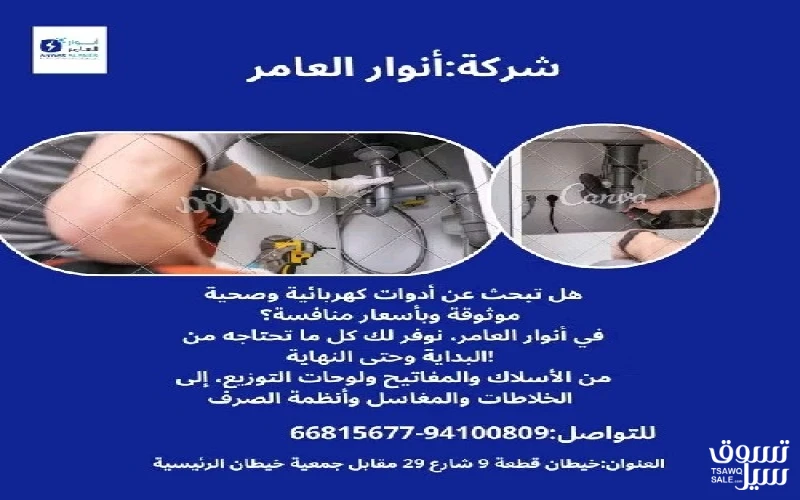 #أنوار_العامر: لأن مشاريعك تستحق الأفضل - يوجد لدينا جميع مواد الكهرباء - يوجد لدينا الأدوات الصحية ومستلزماتها - يوجد لدينا مواد التكييف ولوازمها - عقود صيانة العنوان : خيطان قطعة 9 شارع 29 مقابل جمعية خيطان الرئيسية #كهرباء #صحي #مواد_بناء