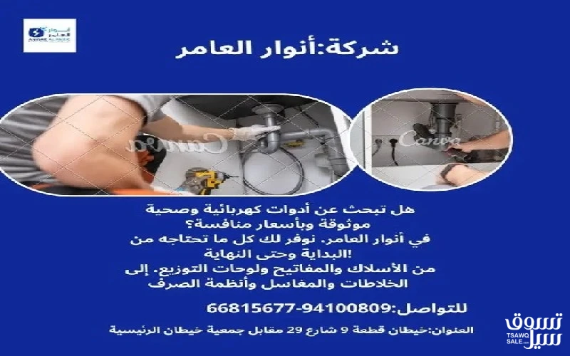 #أنوار_العامر: لأن مشاريعك تستحق الأفضل- يوجد لدينا جميع مواد الكهرباء- يوجد لدينا الأدوات الصحية ومستلزماتها- يوجد لدينا مواد التكييف ولوازمها- عقود صيانةالعنوان : خيطان قطعة 9 شارع 29 مقابل جمعية خيطان الرئيسية#كهرباء #صحي #مواد_بناء