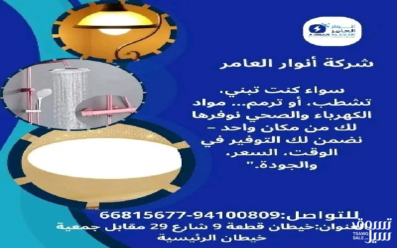 #أنوار_العامر: لأن مشاريعك تستحق الأفضل - يوجد لدينا جميع مواد الكهرباء - يوجد لدينا الأدوات الصحية ومستلزماتها - يوجد لدينا مواد التكييف ولوازمها - عقود صيانة العنوان : خيطان قطعة 9 شارع 29 مقابل جمعية خيطان الرئيسية #كهرباء #صحي #مواد_بناء