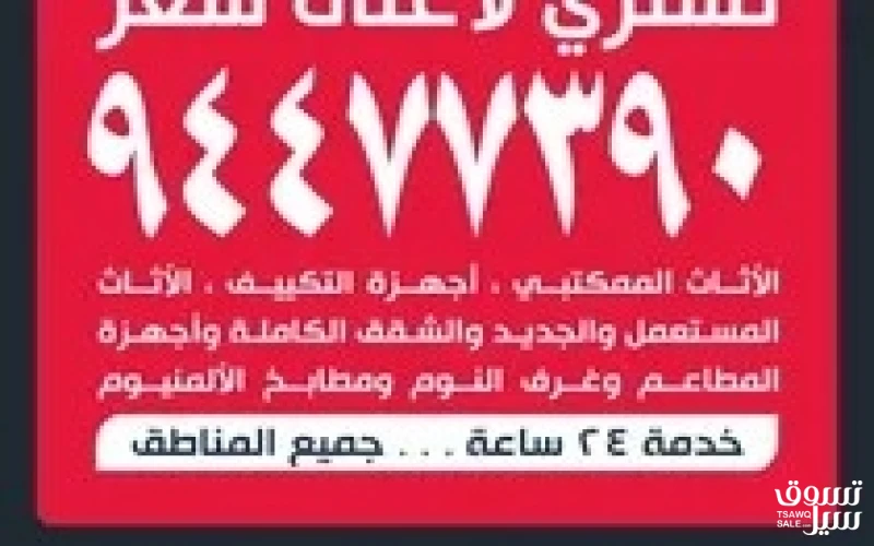 نشتري الأثاث المستعمل والجديد والشقق واغراض المطاعم والمقاهي والسكراب والمكاتب والمخازن