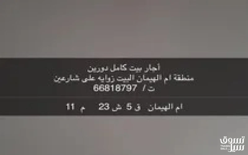 الوصف بيت اجار إضغط ليظهر الرقم.. 668187XX