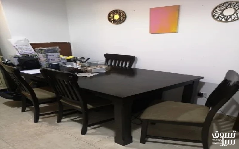 Dining table big with 6 chairs. 6.5 ft x 3.5 ft approx. As is.