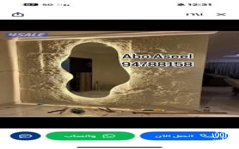 الوصف جميع أعمال الديكورات والأصباغ بديل الحجر وبديل الخشب وبديل الرخام والشيبورد والصفائح الطينيه ورق جدران وباركيه أعمال الكهرباء والصحي والسيراميك الالياف الضوئية (النجوم ) أعمال الجام والشاور بوكس تفصال مغاسل رخام تفصال ابواب وكبدات وكنفات وعزل ابواب وطوف صبغ مائي جوتن صبغ