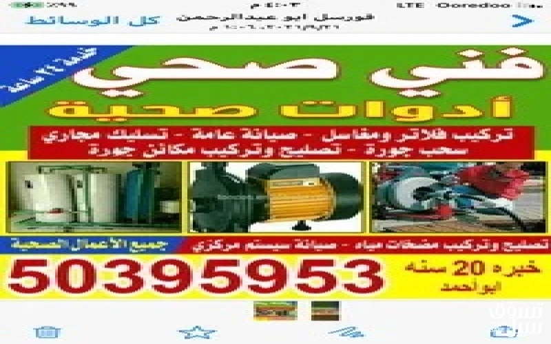فنى ومعلم ادوات صحية وسباكة خبره 22 سنه