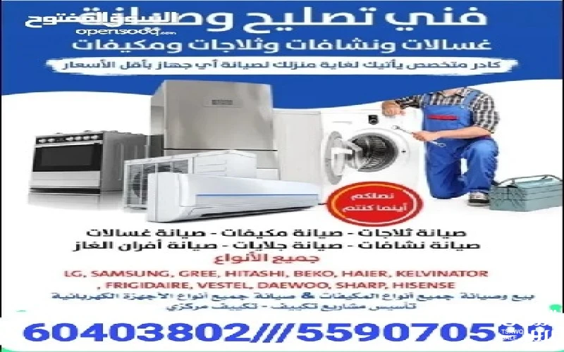 فني صيانة تكييف مركزي و وحدات تصليح غسالات تلاجات بالمنزل بكفاله 60403802