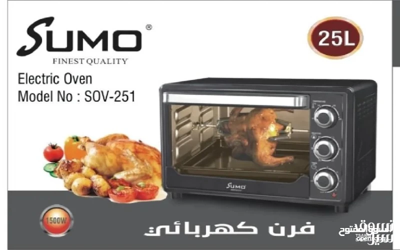 سومو فرن كهربائي 25 ليتر مع شواية تدور بشكل أتوماتيكي المزايا والمواصفات: – فرن ميكروويف 25 ليتر - 3 مستويات طاقة ميكروويف -فرن كهربائي 1500 واط توقيت رقمي حتى 60 دقيقة تنبيه نهاية الطبخ إعداد تذويب الجليد مقبض لسحب الباب .