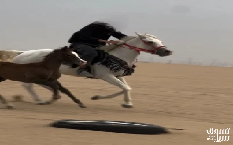 للبيع فرس شرط السلم مصريه بدون اورق صفراء عمرها 3 سنين تحتها مهرتها شرط السلم ما تشتكي من اي شي الفرس معسوفه فيها فك متقدم و مهرتها عمرها شهرين