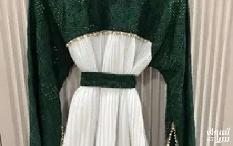 فستان مناسبات طويل مقاس 40 لل 46 مستعمل خفيف اللون اخضر وابيض مبطن من الداخل السعر 15 دينار