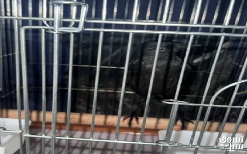 غراب ربوه عمره 5 اشهر ياكل من الايد حط ايدك وياكل اموره طيبه بارد منقاره وقاص اظافره وحالته الصحيه ممتازه ياكل ايشي حتى يتغدا معاك