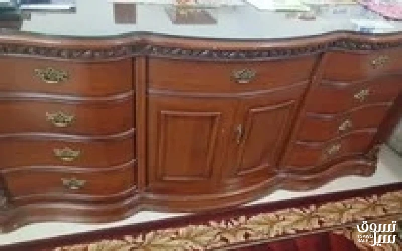 غرفة نوم للبيع عبارة عن سرير تقريبا مترين فى متر ونص دولاب مترين فى متر و70 تسريحة عرض تقريبا. متر و70 2 كومدينو
