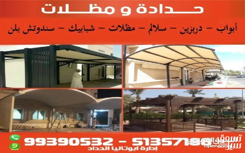 عمل جميع اعمال الحداده في جميع مناطق الكويت ويشمل الأعمال الاتيه أبواب- شبابيك _ سندوتش بلن - مظلات افضل الاسعار