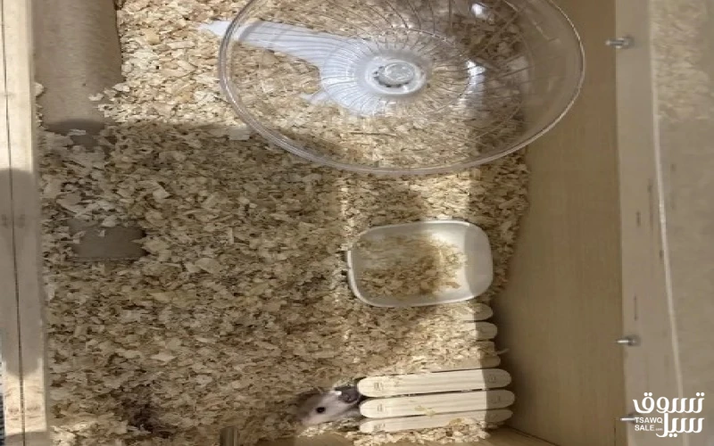 هامستر رمادي مع بيته و العابه .........................................................................................................................
