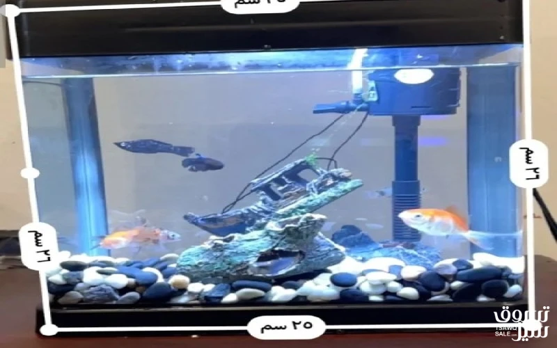 حوض سمك للبيع مع السمك والزينه والاكل السعر ثابت10