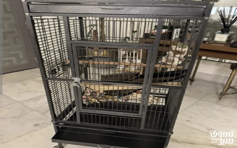 القفص الاسود ب 30و الابيض ب25 اذا الاثنين مع بعض ب50 القفصين ينفعون حق الطيور الكبيرة القفصين مجهزين بالعاب و الاسود يتركب عليه حاجز عشان ما يطيح الوصخ برا