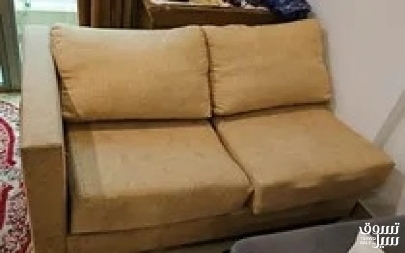 كنبه وكمدينو و2 طاولة و2 كرسي خشبي مع تنجيد