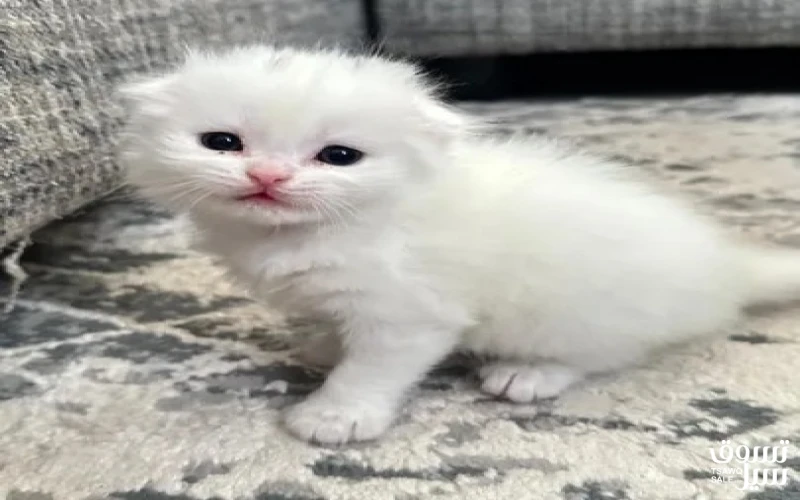 قط ابيض العمر شهر ونص نظيف جدا ولعوب شعر طويل