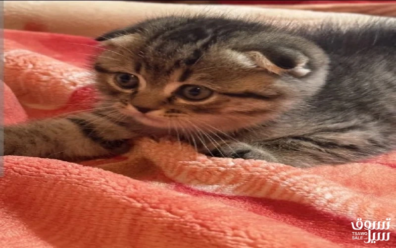 كيتن سكوتش فولد ذكر مع الأغراض لون مميز العمر شهرين يأكل دراي فود معود عالرمل صحته تبارك الرحمن لعوب للتواصل واتس أب