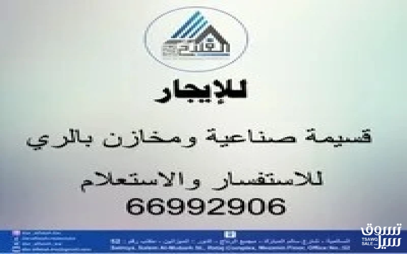 لايجار مخزن مرخص 1000م الري يصلح جميع الأنشطة التخزينية و800م