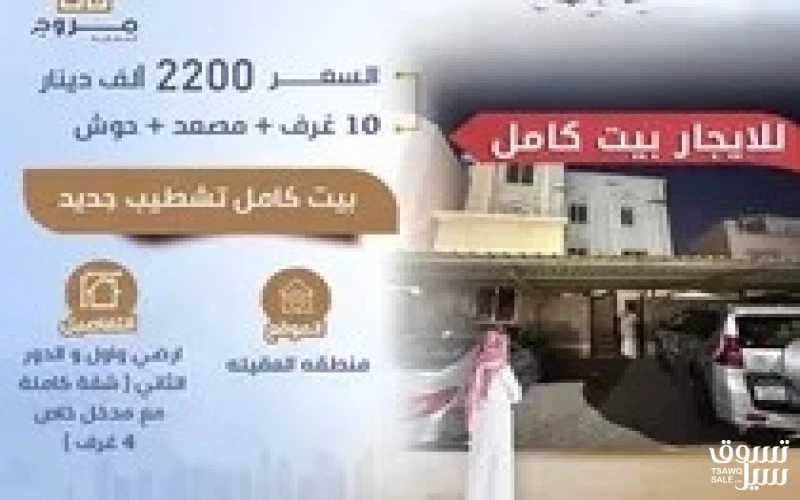 للايجار بيت كامل في منطقه العقيله 6 غرف نوم و شقه كامله مدخل خاص 4 غرف