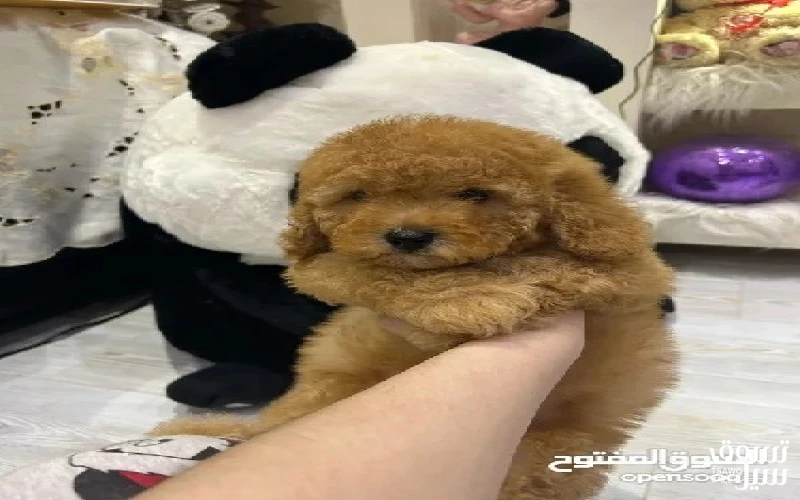 الوصف للبيع بيور بودل تي كب العمر 3 شهور مطعم ومع جواز متعلم على الحمام