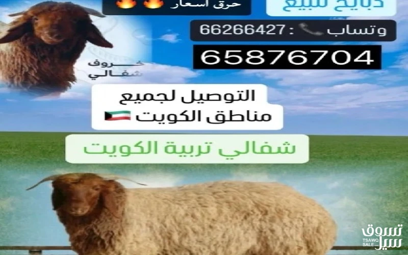 للبيع غنم شفالي معلوف من شهر 2 شرط لحم