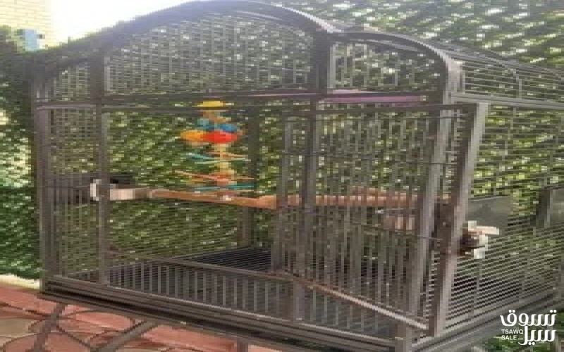 للبيع قفص مع كامل اغراضه شبه جديد القفص يوسع جميع انواع البغبغاء