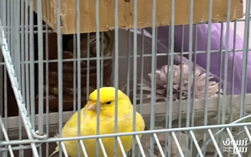 للبيع طير كناري نظيف وخالي من الامراض مع قفصه والاكل جاهز للتواصل وتساب