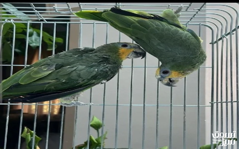 للبيع طيور أمازون اورنج وينق عدد 2 واحد ريشه نظيف والطير أليف ويطلع على اليد أما الثاني ريشه متساقط وفيه خوف ويعض مع قفص السعر 165KD