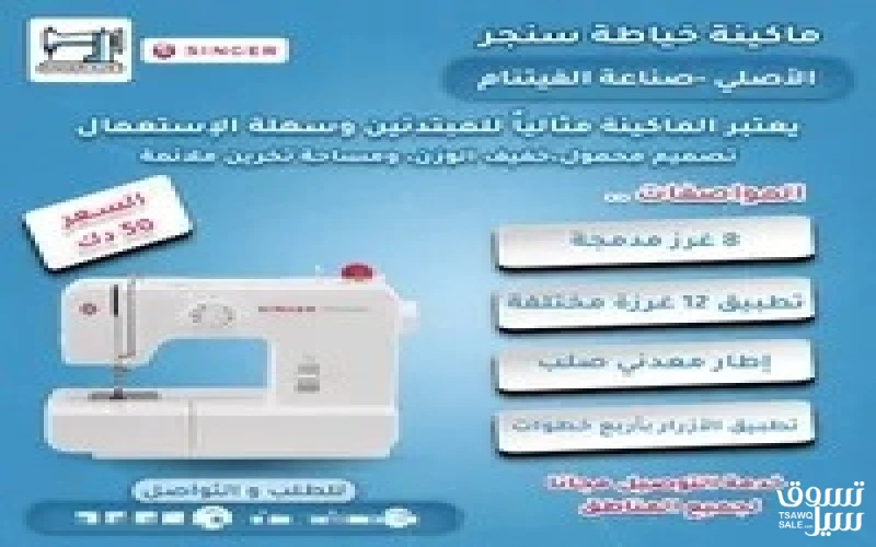 للبيع مكائن الخياطة المنزلية ماركة سنجر الأصلية صناعة الفيتنام جديدة بالكرتون مع خدمة التوصيل مجاناً أحلى هدية للأمهات والأخوات