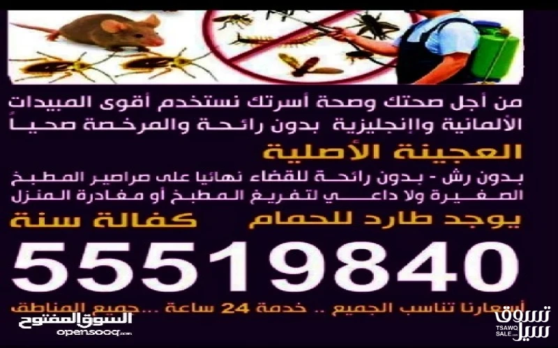 مكافحه جميع انواع الحشرات الصراصير الكبير والصغير النمل الابيض والاسود الفرن البرعص مسجل من وزارة ال