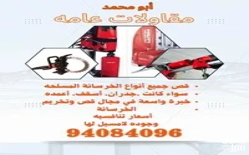 مقاول لقص وتكسير الخرسانة المسلحه وقص الأبواب وفتح التهويه للمداخن والمطابخ وعمل فتحات الكور بالليزر