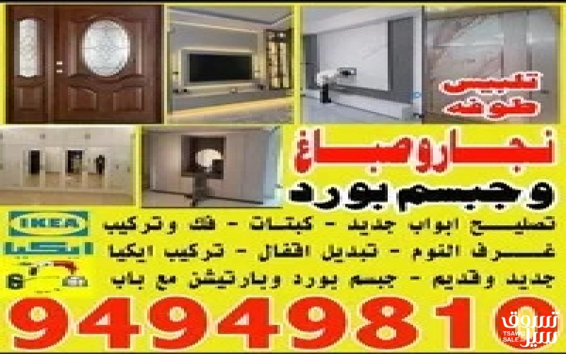الوصف تصليح أبواب جديد كبتات فك وتركيب غرف النوم تبديل إقفال تركيب ايكيا جديد وقديم جبسم بورد بارتيشن مع باب تلبيس طوفه