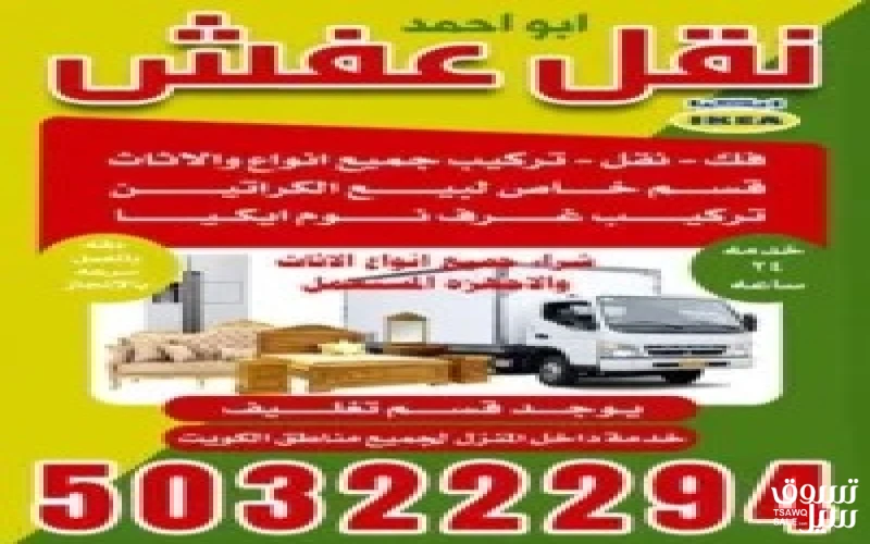 نقل عفش ابو عبدالله هاف لوري وانيت جميع مناطق الكويت +تركيب +نشتري جميع اغراض المنازل50322294