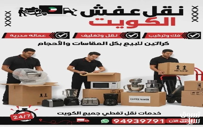 نقل عفش🇰🇼 لنقل وفك وتركيب 🏠جميع انواع غرف النوام👍ايكيا وصيني  ومحلي نجاره كويتي 👍صفات الغانم 🇰🇼سنترهوام وجميع لاثاث المنزلي 🛠️بانسب الاسعار🚚ويوجد قسم خاص التغليف 👍ونقل المكاتب والشركات 🇰🇼والمخازن 🌹والفنادق🏣ونقل داخل وخارج المنزال🇰🇼بانسب الاسعار 🏣يوجدفني ايكيا بالكرتون🛠️وفني لتركيب الستاير وشاشات البلازما🇰🇼بجميع مناطق الكويت🛠️دقه في العمل 🚚وسرعه في الانجار👍اتصل نصلك في أقرب وقت 🏠👍مع إدارة 94939791