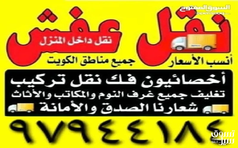 نقل عفش نقل و فك و تركيب جميع غرف النوم ونقل الأغراض والأثاث ونقل داخل المنزل جميع مناطق الكويت