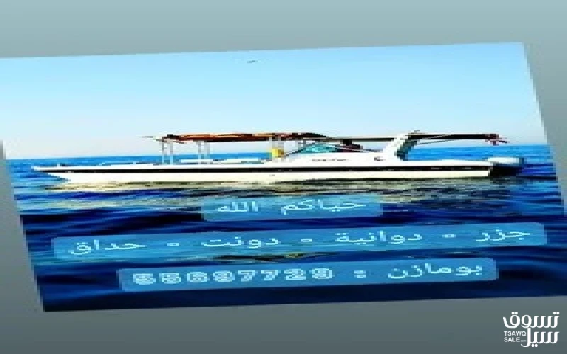 طراد مجهز للرحلات البحريه والحداق به عدة الصيد وتكرم حمام مسجل دي جي ايس بوكس ادوات الامن والسلامه