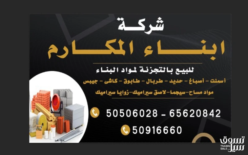 بيع وشراء(حديد-أسمنت أسود-أسمنت أبيض-مواد مساح-طابوق أبيض-طابوق اسود-كااشي-كربستون-اصباغ-سيجما-رمل مغسول-رمل المختبر-تربال عازل-لاصق سيراميك-حمايه عازل سعودي وكويتي-مسمارخشابي6سم-مسمار فولاذ-شبك سعودي-شبك كويتي-شبك ملحوم-زوايا كاتنيك واكسباميت وكورنركير-كاااشي وكربستون-خيش كبير-حديد6ملي-سيجما هيمبل وكي بي سي وجي تي سي-سعودي-جوتن-صلبوخ زيرو ونصف انش وثلاث أرباع-سيم تربيط-حديد شبك