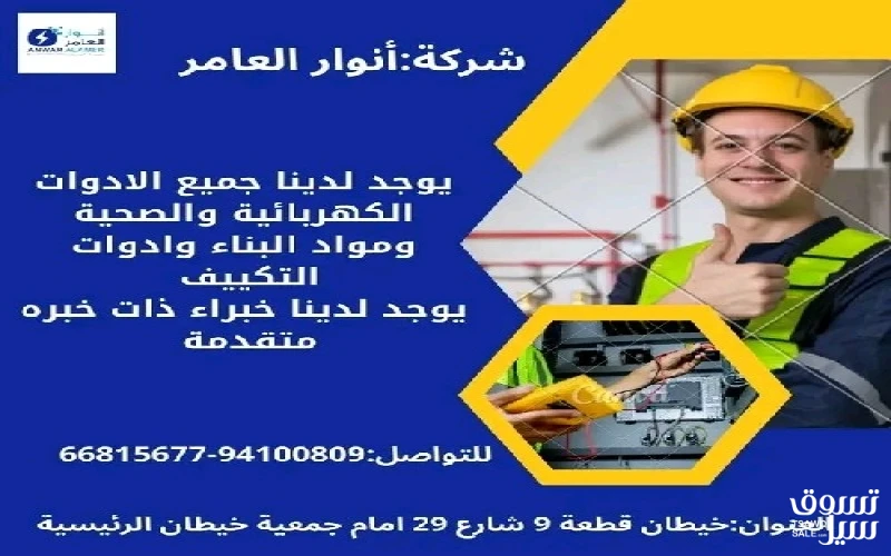 #شركه_انوار_العامر بيع مواد البناء والمواد الأنشائيه - معدات السباكه والتدفئه ولوازمها - بيع الأدوات الكهربائيه وتمديداتها - بيع أدوات صحيه وتمديداتها وسخانات وصهاريج الماء
