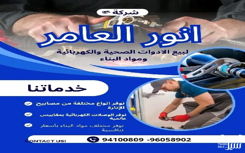 #شركه_انوار_العامر بيع مواد البناء والمواد الأنشائيه - معدات السباكه والتدفئه ولوازمها - بيع الأدوات الكهربائيه وتمديداتها - بيع أدوات صحيه وتمديداتها وسخانات وصهاريج الماء