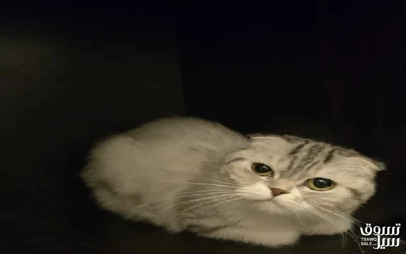 للبيع سكوتش فولد نثية بيور العمر سنتين بصحه ممتازه طبعها هادي جدا مع دفتر تطعيماتها وبوكس تنقل واكلها.. for sale Scotch fold female almost 2year old with box and food very calm cat and cute