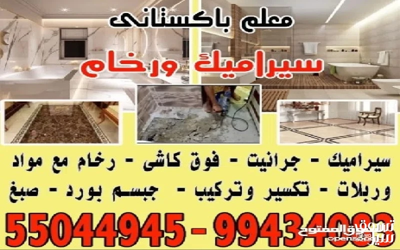 سيراميك جرانيت فوق كاشى رخام مع مواد وربلات تكسير وتركيب جبسم بورد صبغ