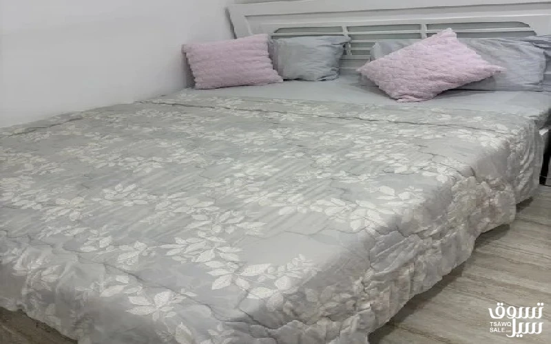 سرير ابيض مع 2قواعد مع مرتبه نظيفه عرض 150 طول 180