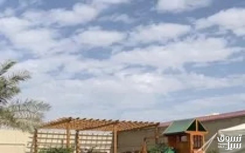 تتكون الاستراحة من : - عدد الغرف 4 - غرفتين ماستر - غرفه عاملات 6 اسره - مطبخ متكامل - دوانيه معزوله مع خدماتها وباب داخلي وخارجي - جلسة خشبية خارجية للحديقة - حمام سباحه كبير (بشتاء) خيمه - صاله مطله علي الحديقه - العاب اطفال