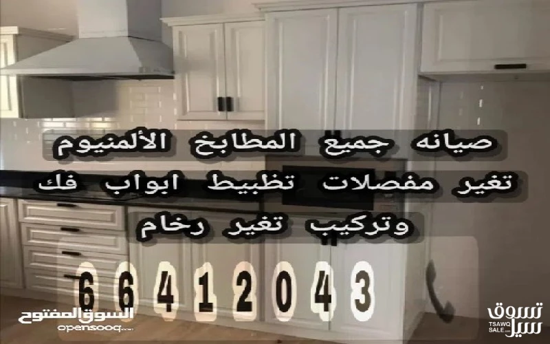 صيانه جميع المطابخ الألمنيوم تغير مفصلات تظبيط ابواب فك وتركيب ونقل بمكان اخر جميع صيانه المطبخ موجوده وتغير مسكات الابواب ويوجد مغاسل استيل تفصال ابواب ودرايش