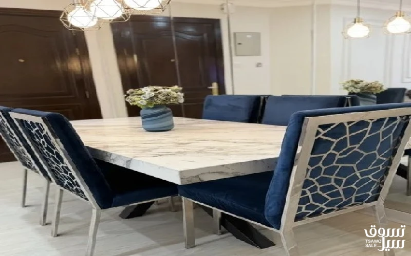 طاولة سفرة رخام اصلي 100% ( 6 كراسي ) ثقيله وفخمة جدا سعر الكرسي الواحد ما يقارب 110 دينار كويتي طولها 200 عرضها 100 ارتفاعها 76